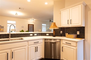 -full kitchen including refrigerator, coffee maker, oven, --cooktop, microwave, dishwasher